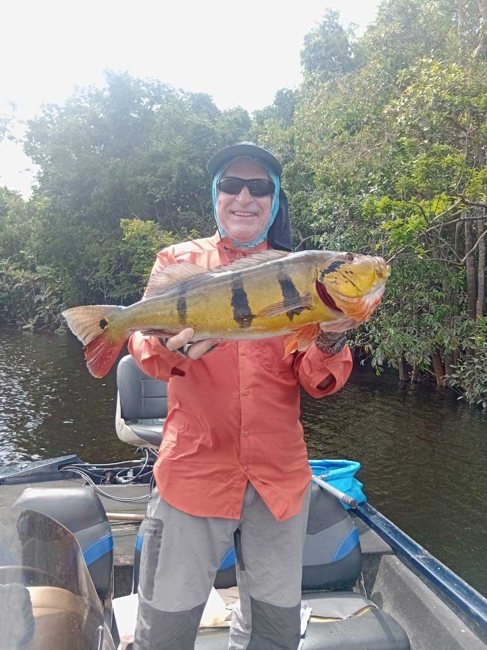 In the heart of the Amazon rainforest , fully renovated, the Rio Negro Lodge , reopens its doors to sports fishermen from all over the World . Santana Rio Negro Lodge Located between the municipalities of Barcelos and Santa Isabel do Rio Negro , the Lodge is a strategic base to cover several rivers in the region where the largest peacock bass in the world have been captured . Steve McDonald catch a Tucunaré weigth 9 kilos ,Only in 2010 the IGFA world record was broken twice there: The American William Gassmann February with a Açú of 28lbs ( 12.6 kg) and the Brazilian Andrea Zaccherini November catch a fish of 29 lbs 1 oz ( 13.19 kgs )